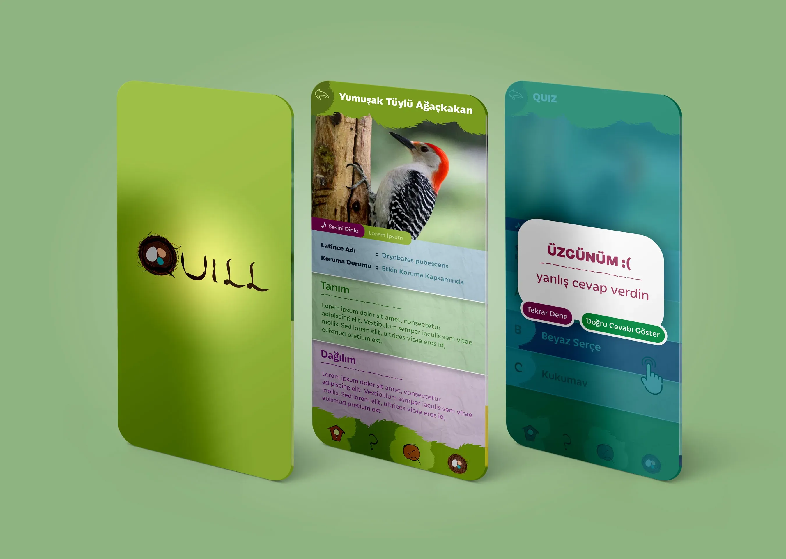 Dünyanın çeşitli bölgelerinden 150'ye yakın kuş türünü resim ve sesleri ile tanıtan Quill Uygulaması ile çocuklar kuş gözlemciliğine ilk adımını atacak. Kuşları görüntü ve sesinden tanımaları için eğlenceli quiz oyunu ve gözlemlenen kuşları not alma fırsatı sunan günlük bölümü ile çocuklar kuşları tanıma deneyimlerini daha keyifli hale getirebilecek.